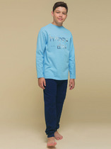Пижама regular fit: футболка, шорты из качественного и приятного на ощупь трикотажа джерси. Высокое содержание хлопка 95%. Благодаря наличию эластана в составе ткани изделие проще в уходе и держит форму. Шорты с эластичным поясом со шнурком.
