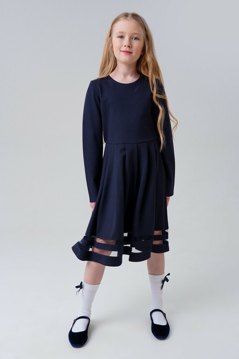 Темно-синее школьное трикотажное платье для девочки-подростка
