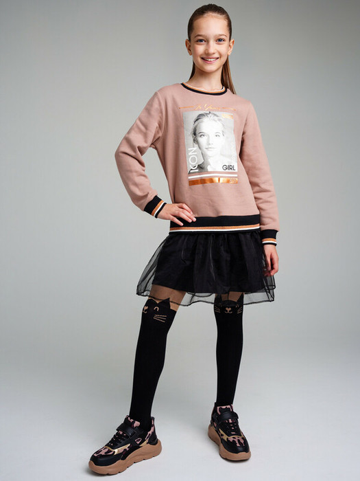 Платье из футера с юбкой из органзы. Верх платья из футера с начесом. Высокое содержание хлопка.