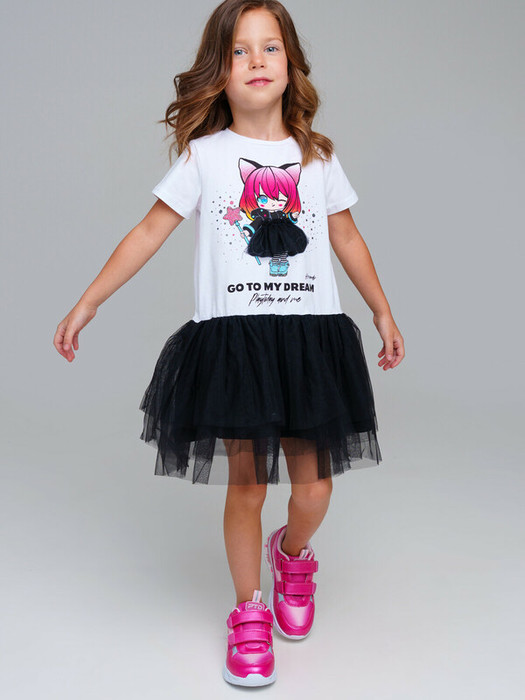 Платье детское для девочки. Нарядное платье с высоким содержанием хлопка. Модель из капсульной коллекции CATS DREAM. Соберите полный образ в едином стиле!    Модель выполнена из качественного и приятного на ощупь трикотажа.