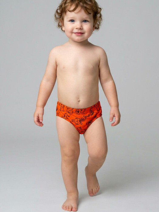Плавки детские, прилегающего силуэта для мальчика. Изготовлены из эластичного трикотажа, с подкладкой для большего комфорта. Ткань устойчива к солнцу и солёной воде, благодаря UF-защите сохраняет насыщенность цвета и структуру волокон. В поясе — удобная резинка и регулируемый шнурок.