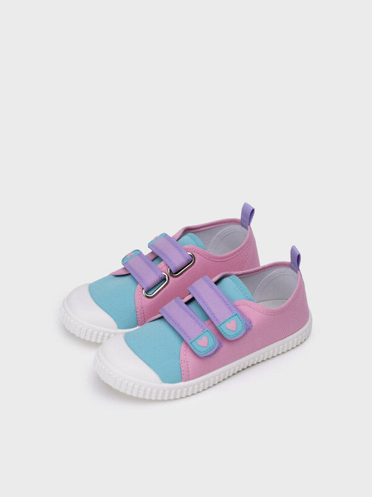 Текстильные детские кеды с липучками для девочки. Две застежки-липучки позволяют ребенку обуваться самостоятельно. В обуви используется текстильная подкладка c 80% содержанием хлопка, которая обладает высокой гигроскопичностью. Стелька выполнена из свиной натуральной кожи и имеет анатомический элемент для поддержания свода стопы.  Стелька съемная. Облегченная подошва из ПВХ гибкая, не скользит и устойчива к истиранию.