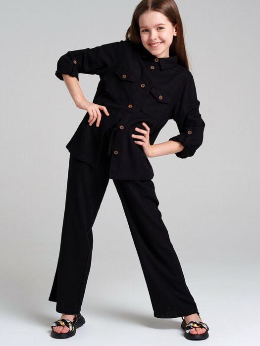 Рубашка для девочки. Приятный к телу материал с высоким содержанием вискозы. Свободный силуэт. Застёжка на пуговицы. Функциональные карманы.