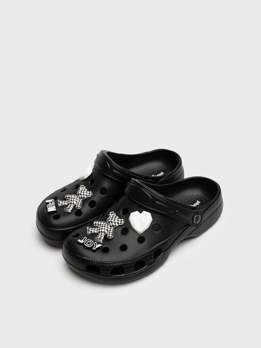 Трендовые сабо для девочки подростка в черно-белой гамме. Шлепанцы выполнены из облегченного и прочного ЭВА. Материал хорошо моется. Модель украшена фирменными джибицами. Форма модели учитывает эргономику стопы. Модель имеет перекидной ремешок для лучшей фиксации обуви на ноге.