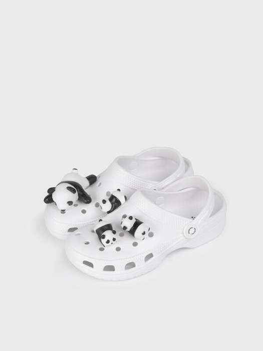 Трендовые сабо для девочки подростка в черно-белой гамме с джибицами-пандами. Шлепанцы выполнены из облегченного и прочного ЭВА. Материал хорошо моется. Форма модели учитывает эргономику стопы. Модель имеет перекидной ремешок для лучшей фиксации обуви на ноге.