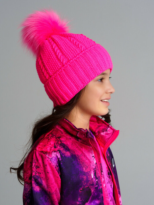 Утепленная шапка из вязаного трикотажа. Пряжа из акрила: легкая, теплая, гипоаллергенная. Ажурная вязка. Утеплена синтепоном. Подкладка из мягкого трикотажа с высоким содержанием хлопка 95%.