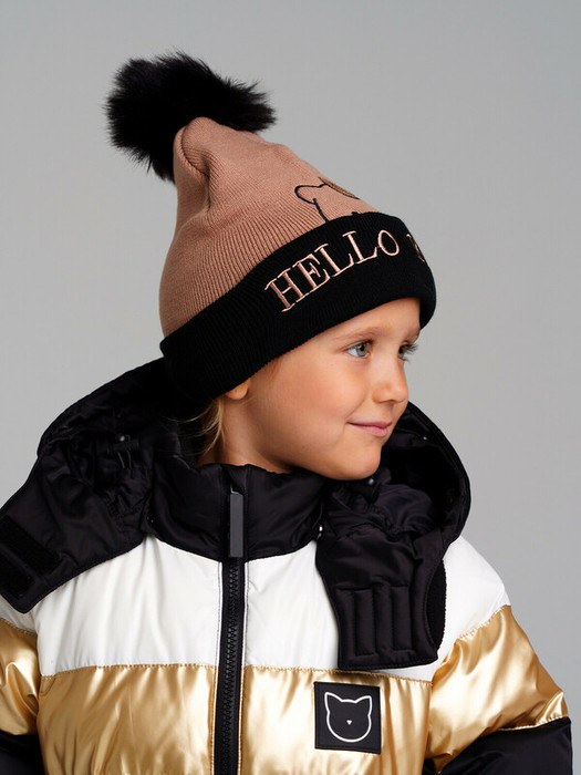 Шапка из плотного вязаного трикотажа. Двойная вязка. Пряжа из акрила: легкая, теплая, гипоаллергенная. Подкладка из мягкого, теплого флиса. Отделка из пайеток.