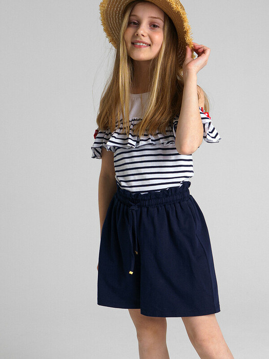Шорты трикотажные. Размер изделия на фото - 140, параметры модели (см): рост 139, обхват груди-талии-бедер: 62-53-72. Высокое содержание хлопка 95%. Благодаря наличию эластана в составе ткани изделие проще в уходе и держит форму. Эластичный пояс.