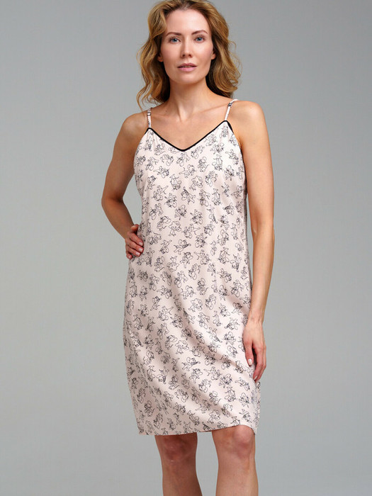 Ночная сорочка А-силуэта из 100% вискозы. Легкий и приятный к тему материал. Регулируемые бретели. По низу изделия кружево.