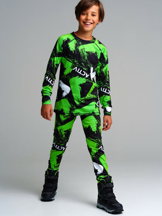 Термокомплект: брюки, лонгслив. Линия Nord до -20С. Идеальный вариант для активного отдыха. Материал, гладкий с лицевой стороны, с изнаночной стороны утеплен микроначесом. Эластан в составе обеспечивает комфортную носку и свободу движений. Благодаря смесовому составу ткани и плетению термобелье отводит лишнюю влагу, сохраняя комфортный микроклимат под одеждой. *температурный режим является рекомендованным, необходимо учитывать уровень активности ребенка и многослойность  одежды (флис, верхняя одежда).