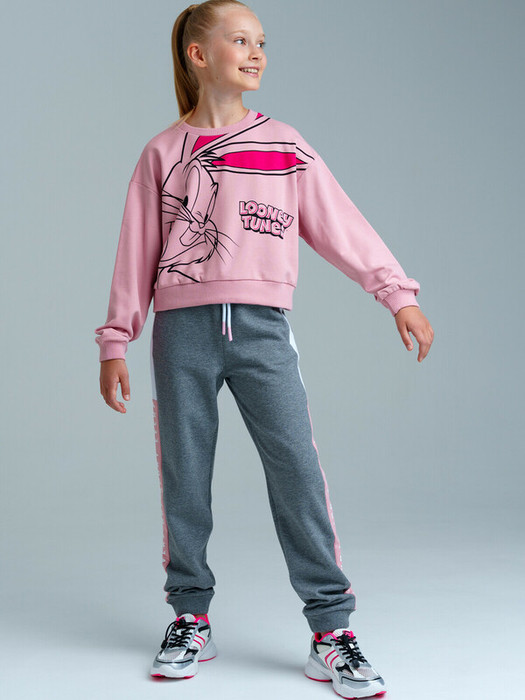 Оверсайз свитшот - стильный выбор девочки подростка для занятий физкультурой и спортом, как на улице, так и в зале. С брюками или шортами толстовка составит стильный красивый комплект в школу. Мягкий футер с высоким содержанием хлопка создаст приятное прилегание к телу. Модная свободная форма подарит комфорт, и  подчеркнет энергичный образ школьницы.