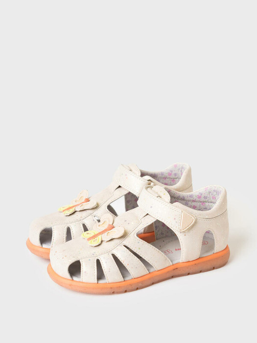 Сандалии для девочки с закрытой носочной и пяточной частью выполнены из блестящей искусственной кожи. Спереди декорированы объемной бабочкой. Удобный ремень с липучкой позволяют регулировать обувь на любой подъем и позволяют ребенку обуваться самостоятельно. Подкладка выполнена из принтованной натуральной свиной кожи. Стелька выполнена из натуральной кожи и имеет анатомический элемент для поддержания свода стопы в правильном положении. Подошва из ТПР гибкая и нескользкая. Парфюмированная подошва имеет запах кокоса. Подошва в этой модели выполнена по новой экологической технологии - в составе подошве присутствую переработанные волокна кокоса.