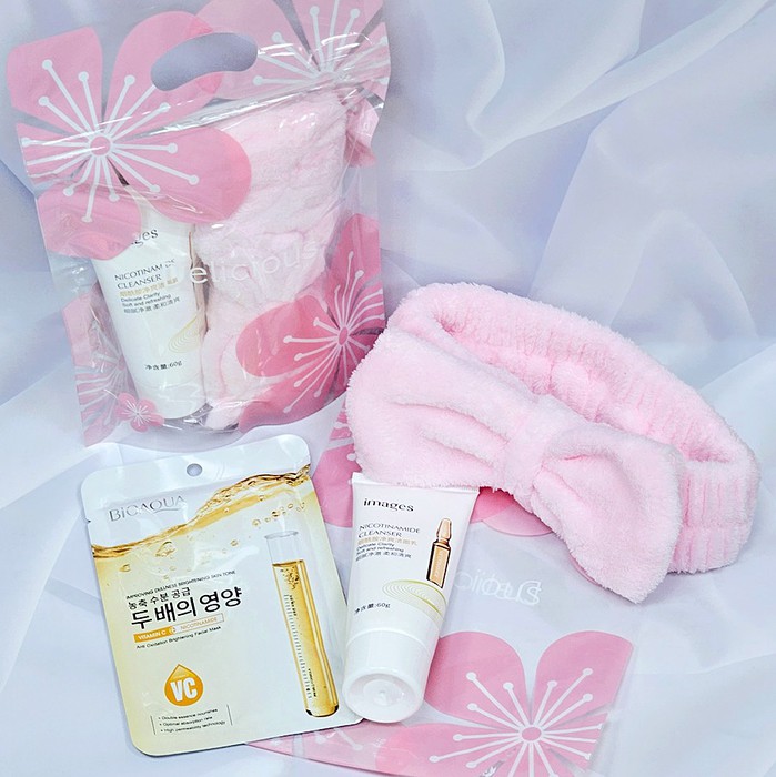 Совместные закупки Екатеринбург Косметика и парфюмерия Прочий макияж — Подарочный набор в zip-пакете "Розовые Цветы" (Пенка + Маска + Повязка)