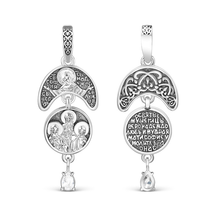 Подвеска из чернёного серебра с фианитом - св.муч.Вера, Надежда, Любовь и мудрая