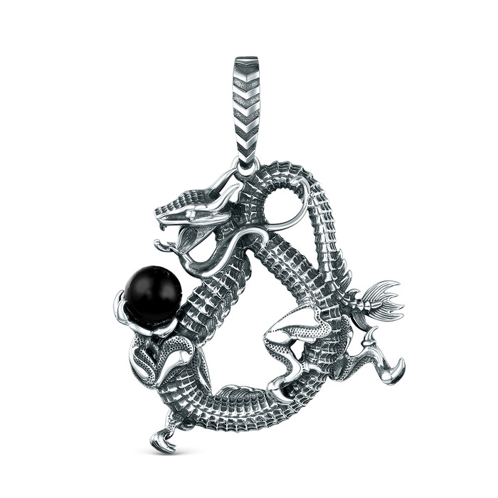 Совместные закупки Екатеринбург Ювелирные украшения и бижутерия Подвески — Подвеска из чернёного серебра с синтетическим агатом - Дракон 925 пробы ПДр-004о