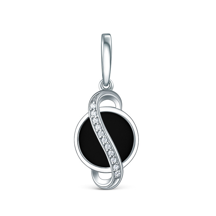 Совместные закупки Екатеринбург Ювелирные украшения и бижутерия Подвески — Подвеска из серебра с чёрным агатом и фианитами родированная П-2791-Р-Ча