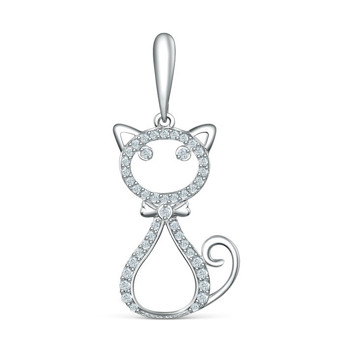 Совместные закупки Екатеринбург Ювелирные украшения и бижутерия Подвески — Подвеска из серебра с фианитами родированная - Кошка пз0037