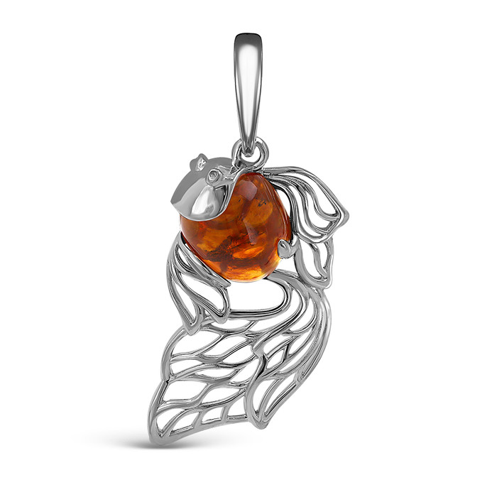 Совместные закупки Екатеринбург Ювелирные украшения и бижутерия Подвески — Подвеска из серебра с пресс. нат. янтарём родированная - Рыбка 925 пробы п55р640