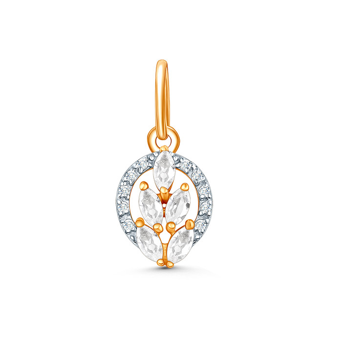 Подвеска из золочёного серебра с горным хрусталём, фианитами и родированием П-22