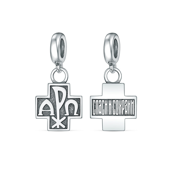 Совместные закупки Екатеринбург Ювелирные украшения и бижутерия Подвески — Подвеска-шарм религиозная из чернёного серебра - Хризма, Спаси и сохрани П-2557о
