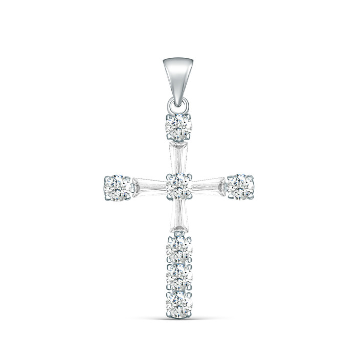 Подвеска в виде креста из серебра с фианитами родированная 925 пробы 3876р