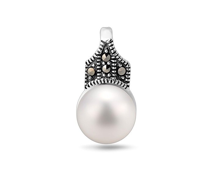 Вес: 3.01 г Вставка: Марказит Цвет камня: Белый Производство: Таиланд Покрытие: Оксидирование Количество: 12Подвеска, арт.656365 Серебро Серебро 925, 3,01 гр., жемчуг , марказит