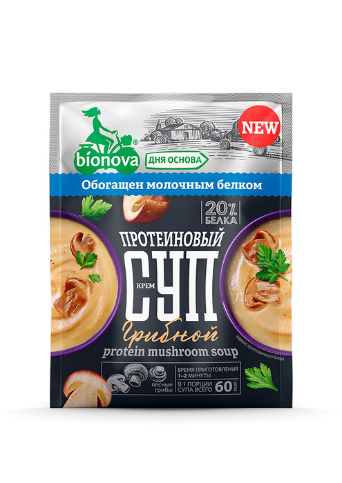 Натуральный протеиновый грибной крем-cуп Bionova с высоким содержанием белка, низким содержанием жира и натуральными ингредиентами специально разработаны для людей, ведущих активный образ жизни, идущих в ногу со временем, но, несмотря на высокий жизненный ритм, следящих за своим питанием.