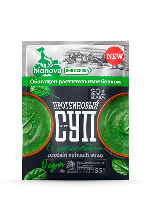 Натуральный протеиновый крем-cуп со шпинатом Bionova® с высоким содержанием вегетарианского белка, низким содержанием жира и натуральными ингредиентами специально разработаны для людей, ведущих активный образ жизни, идущих в ногу со временем, но, несмотря на высокий жизненный ритм, следящих за своим питанием.