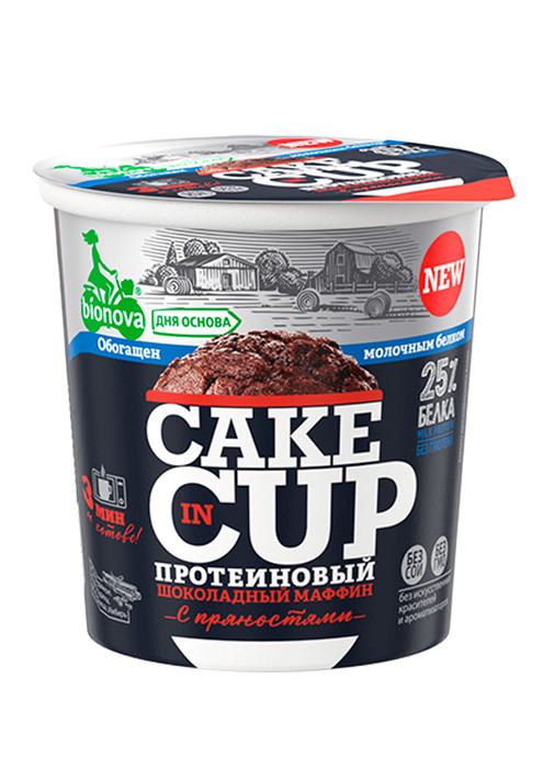 1. Аккуратно удалите мягкую защитную крышку. 2. Добавьте молоко или воду комнатной температуры до метки внутри или снаружи стакана (ок. 70 мл). Можно добавлять чуть больше или чуть меньше жидкости в зависимости от желаемой консистенции готового маффина. 3. Тщательно перемешайте смесь до получения однородной консистенции. 4. Выпекайте в микроволновой печи при максимальной мощности в течение 3 минут.
