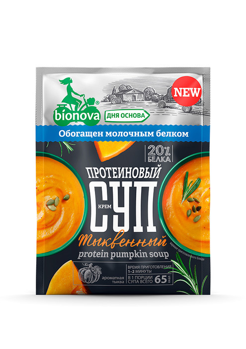 Натуральный протеиновый тыквенный крем-cуп Bionova® с высоким содержанием белка, низким содержанием жира и натуральными ингредиентами специально разработаны для людей, ведущих активный образ жизни, идущих в ногу со временем, но, несмотря на высокий жизненный ритм, следящих за своим питанием.