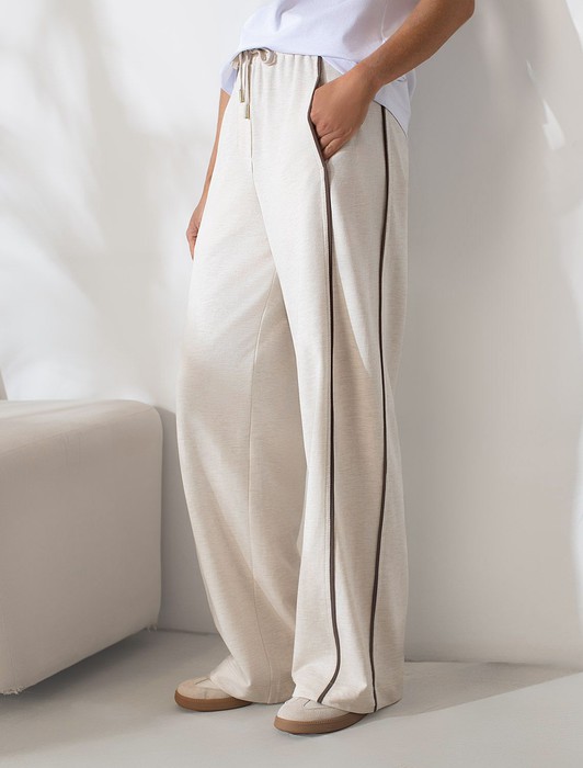 Состав: 95%Хлопок 5%ПУ Плотность: 240 Г/м2 Параметры модели на первом фото: Рост 172, бюст 88, талия 64, бедра 88 Размер товара на первом фото: 42Прямые брюки овсяного цвета с эффектом меланж выполнены из премиального футера двухнитки с эластаном плотностью 240 Г/м2. Повседневные брюки сочетают в себе комфорт и оригинальность. Брюки выполны из натурального хлопка, который обеспечивает мягкость и дышащие свойства ткани. Нежный материал дарит ощущение уюта в любое время года, а премиальное качество изготовления гарантирует долговечность и сохранение формы после множества стирок. Лампасы добавляют динамики и вытягивают силуэт. Удобный пояс на резинке регулируется хлопковым шнурком. Юлагодаря свободному прямому крою, брюки подойдут на любую фигуру, а так же большие размеры, включая 56. В этих спортивных брюках вы будете чувствовать себя уверенно, наслаждаясь каждым моментом дня.