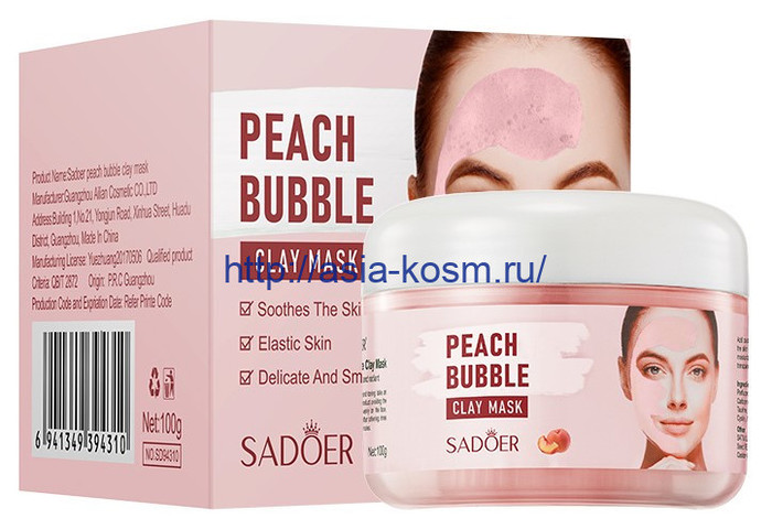 — Пузырьковая глиняная маска Sadoer с экстрактом персика(94310)