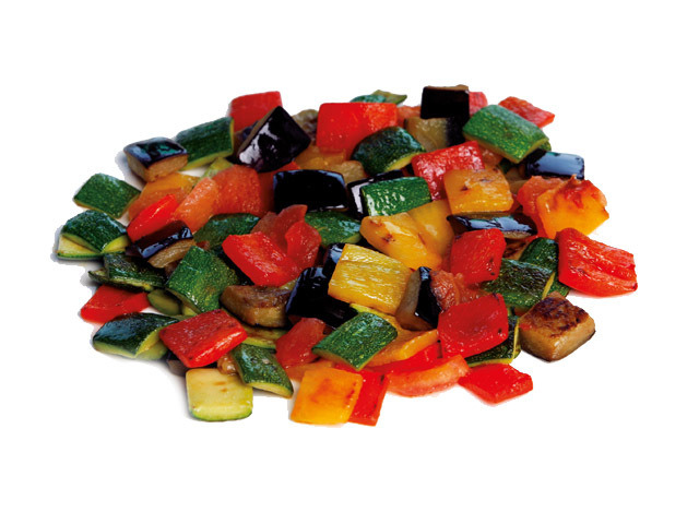 Включает в себя цукини, томаты, лук, перец и баклажаны.