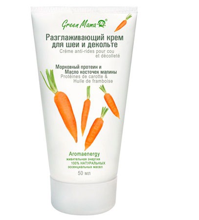 Кожа в области шеи и декольте очень чувствительна. Чтобы как можно дольше сохранить упругость и гладкость, мы создали этот замечательный разглаживающий питательный крем на основе морковного протеина и масла косточек малины. Морковный протеин мгновенно придаёт коже эластичность, а масла малины и моркови — природные источники витаминов А, Е, и F — увлажняют, питают и защищают, предотвращают преждевременное старение.