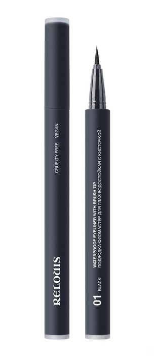 Relouis Подводка-фломастер д/глаз водостойкая с кисточкой, тон:01 black(черн.) (