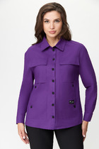 Блузка, комбинированная прямого силуэта, с втачным одношовным рукавом, со складкой и манжетой, с застежкой на петли-пуговицы и спущенной линией плеча. Полочка из трикотажа и рубашечной ткани с центральной застежкой на петли-пуговицы и вышивкой "Самолет". Спинка из трикотажа с печатью "BUTER". Воротник рубашечный отложной на стойке. Спинка и полочка с фигурным низом. Внизу по боковым швам обработаны разрезы.