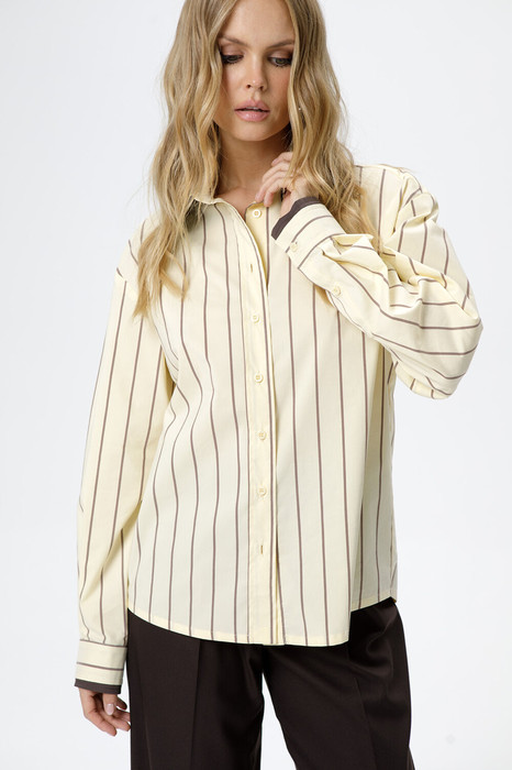 Хлопковая свободная рубашка в полоску с двойными воротниками и манжетами.