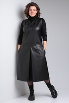 Сарафан выполнен из экокожи высокого качества, изнанка в ткани - замш. Ткань тянется. Кнопки на сарафане металлические.