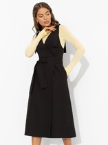 Сарафан прямого силуэта из трикотажного полотна с имитацией вельвета. Горловина V -образной формы с отделкой из экокожи. Застежка центрально — бортовая на петли и пуговицы. По переду нагрудные вытачки и обработаны карманы с листочками. На спинке фигурный вырез. Сарафан на подкладке. Длина сарафана по спинке — 118 см.