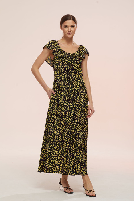 Летний, стильный, красивый сарафан без подкладки. Облегающий лиф и присборенная нижняя часть сарафана удачно контрастируют друг с другом. По переду лифа сарафана безпритачные бочки, спинка со средним швом и талевыми вытачками. По центру переда сарафана притачные планки на функциональную застёжку петли-пуговицы. По верху лифа сарафана волан-пелерина, переходящий от центра переда на плечи и спинку. На плечевом уровне настрочена эластичная тесьма-резинка, создающая эффект сборки. Пуговицы могут отличаться от заявленных на фото. В боковых швах нижней части сарафана боковые функциональные карманы. Горловина переда и спинки, проймы- обработаны обтачками. Шикарная посадка по фигуре. Длина сарафана от уровня линии талии – 90,5см. Цвет сарафана может отличаться на полутон от заявленного на фото.