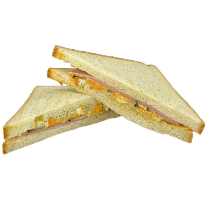 Состав: ветчина с индейкой, сыр творожный, соус «Огуречный релиш», соус майонезный, медово-горчичная заправка, паприка красная, приправа «Смесь перцев», хлеб тостовый.