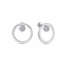 Серьги с фианитом родированные серебро 925*