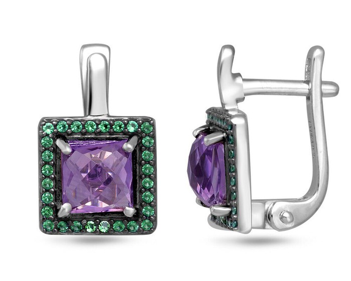 Серьги, арт.656873 Серебро Серебро 925, 4,51 гр., аметист , наноизумруд