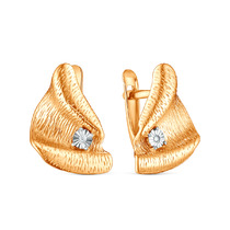Серьги из золочёного серебра с бриллиантом и частичным родированием 925 пробы С-