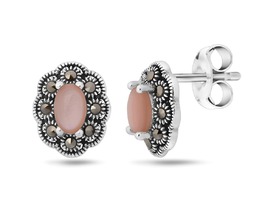 Серьги, марказит , перламутр розовый, SL-LNJ342