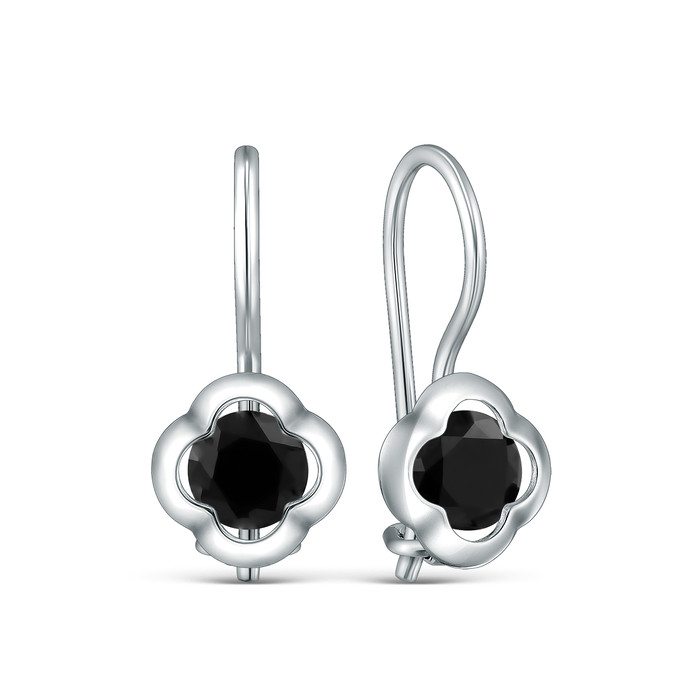 Серьги детские из серебра с фианитами родированные - Клевер 925 пробы S218034101