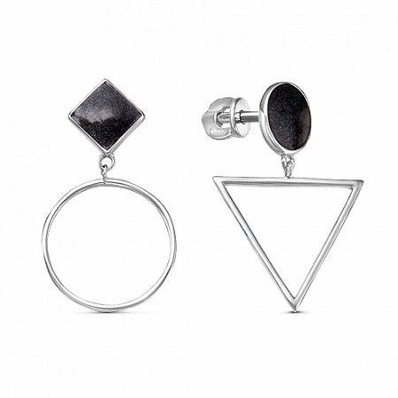 Серьги эмаль черная родированные серебро 925*