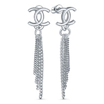 Серьги-пусеты длинные с цепями из родированного серебра 925 пробы с-0122р