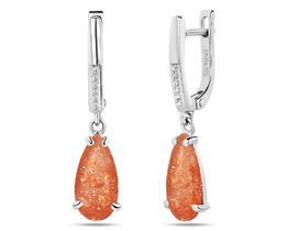 Серьги с фианитом родированные серебро 925*