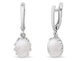 Серьги из серебра с нат.лунным камнем и пл.кварцем цв.зелёный лунный камень роди